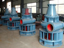 水輪泵中的水輪機(jī)一般為軸流式,離心泵的壓出室一般采用蝸殼式。泵設(shè)在水輪機(jī)之上,整機(jī)全部淹沒(méi)在水中運(yùn)轉(zhuǎn),因此無(wú)需吸水管。泵和水輪機(jī)之間采用水潤(rùn)滑軸承。水輪泵結(jié)構(gòu)簡(jiǎn)單,制造容易,操作方便,維修費(fèi)用很低,不抽水時(shí)接動(dòng)力輸出軸可帶動(dòng)加工機(jī)械或小型發(fā)電機(jī),特別適合于山區(qū)農(nóng)村使用。沿海還建有利用潮汐能的水輪泵站。